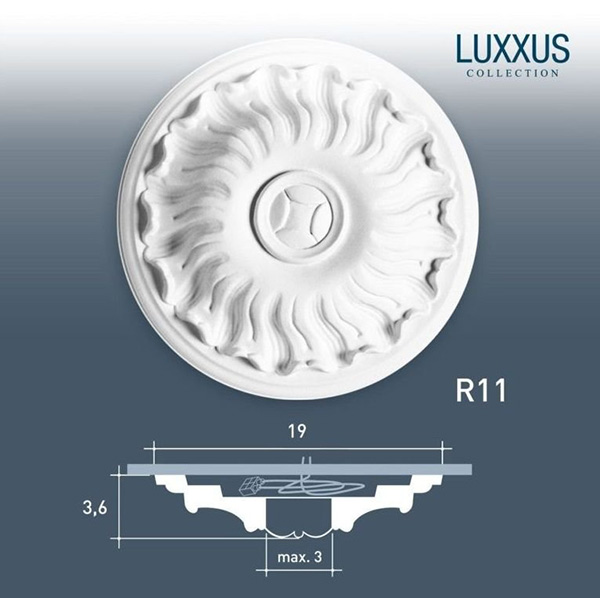 Небольшая потолочная розетка R11 с классическим орнаментом может использоваться, чтобы скрыть лишние провода.
