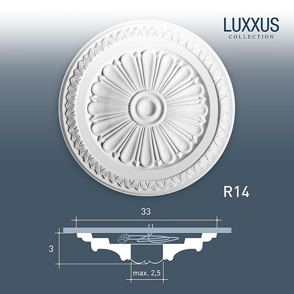 Розетка R14 с декором в виде стилизованного цветка.