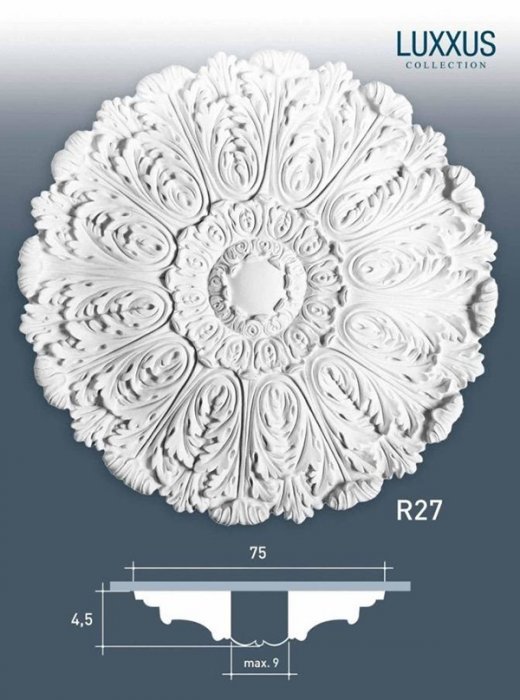 Розетка R27 с пышным узором из листьев аканта.