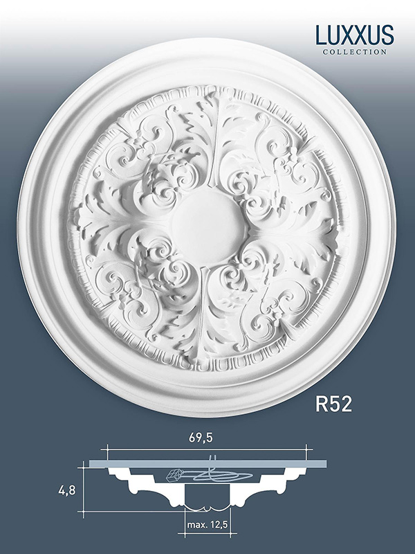 Потолочная розетка R52 с пышным классическим узором.